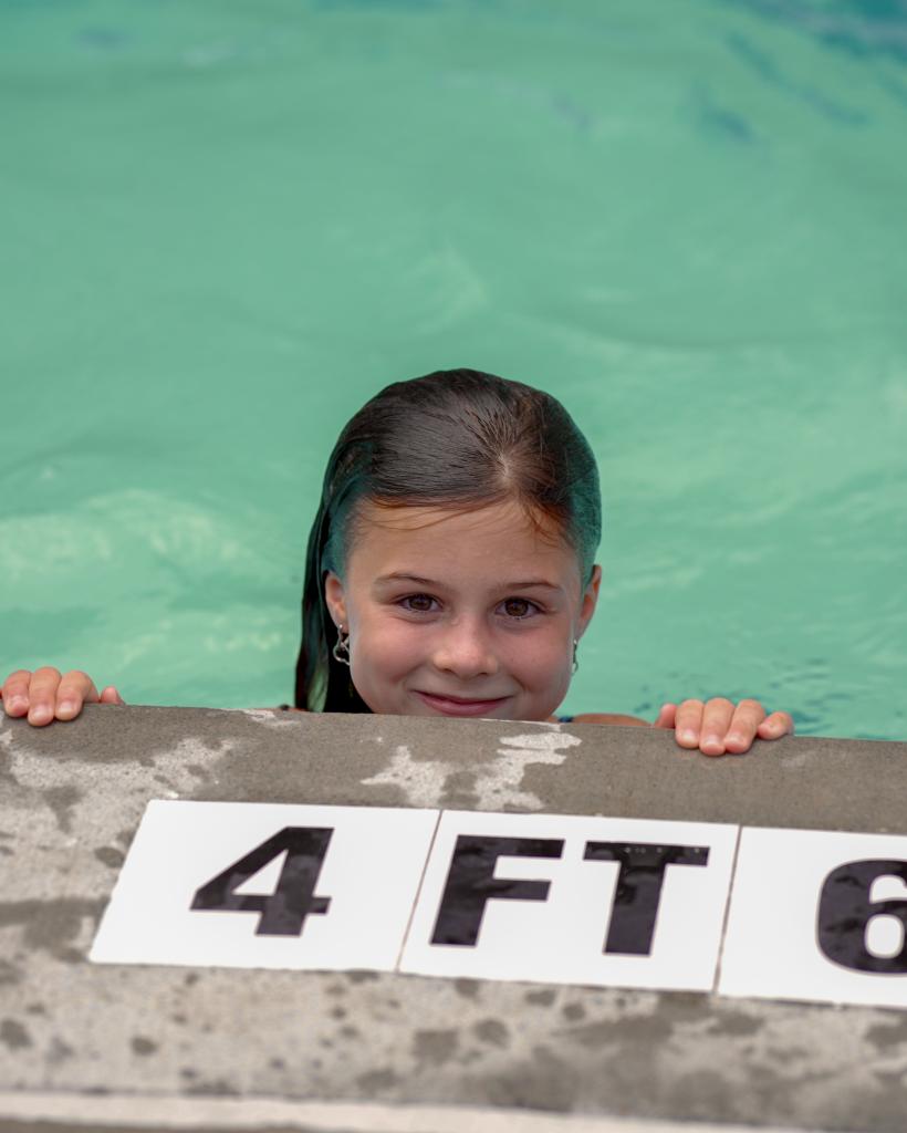 Different swim bands are allowed in different parts of the pool and the lake depending on depth.